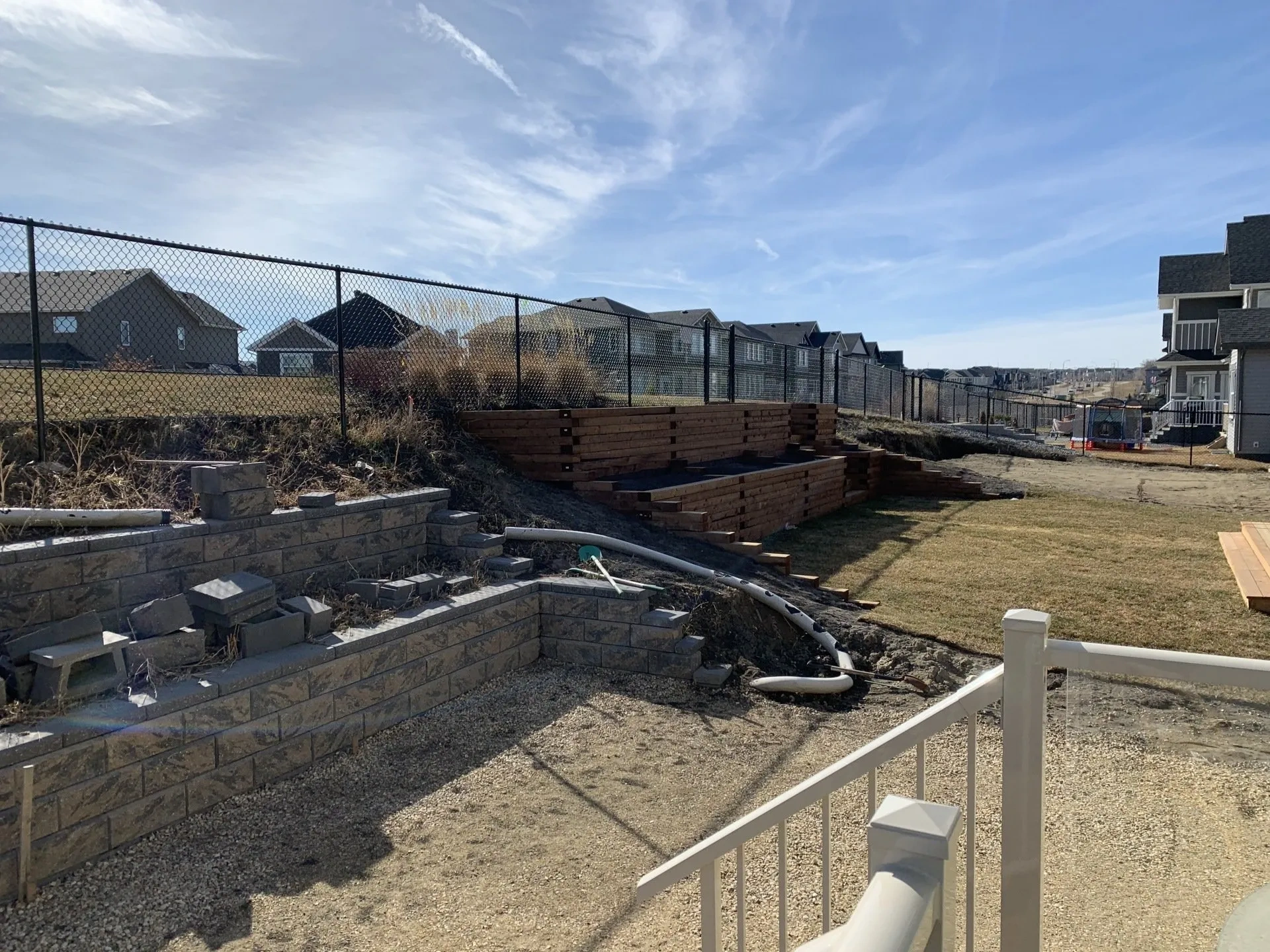 This is a job we did in spring 2019. This was a DIY project, that we completely took apart. Newhart Landscaping redesigned the backyard landscape, installed paving stones. We used Bella Turf, Maya steppers, and expocrete wall block. We also used Bridgewood pavers.